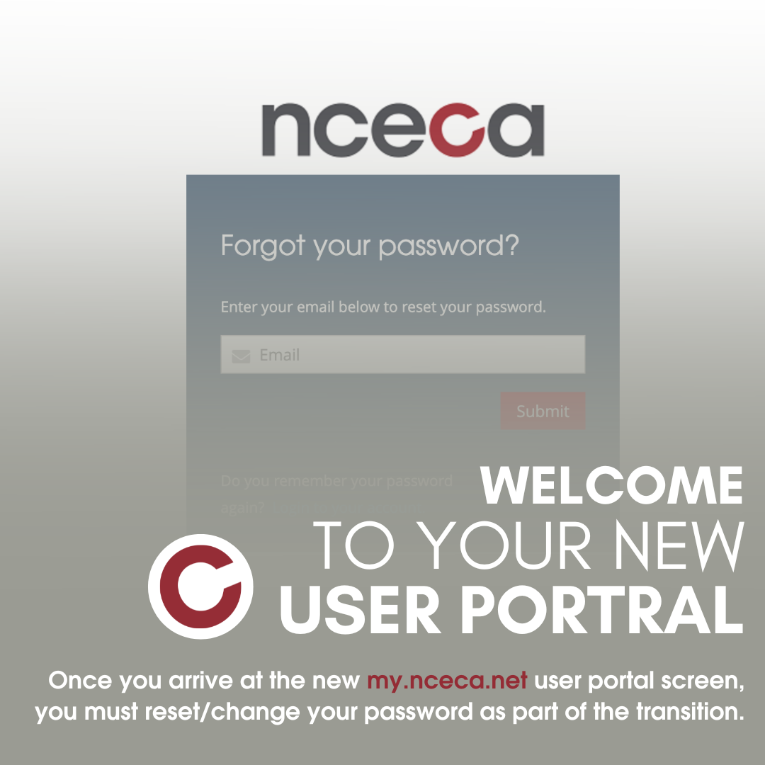 When you first arrive at the new my.nceca.net User Portal, you’ll need to reset your password as part of the transition. Click here to reset/change your password now!